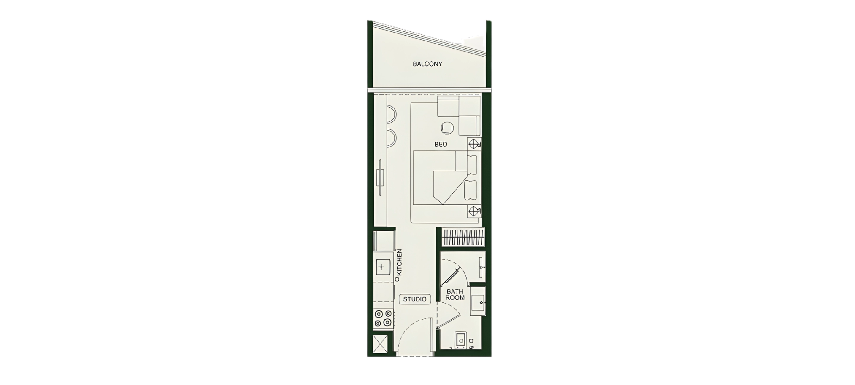 - Studios: 346 - 367 sq ft