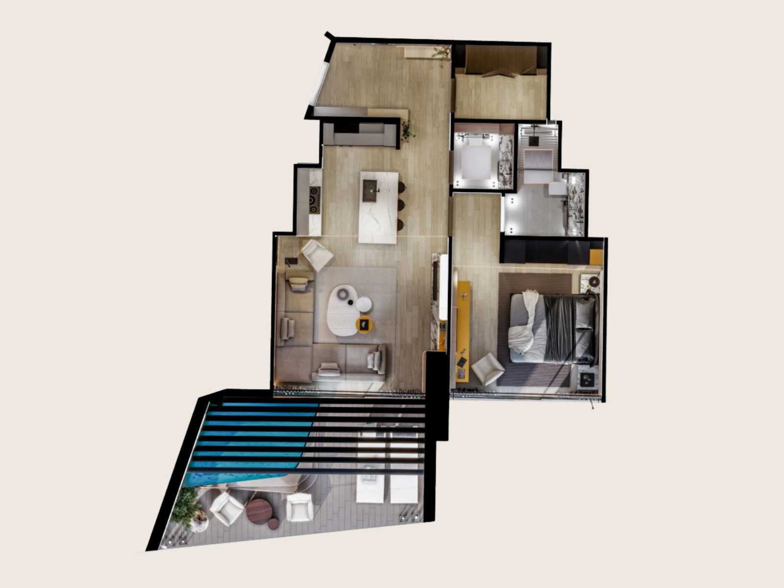 - 1BR: 806.97 – 928.93 sq ft