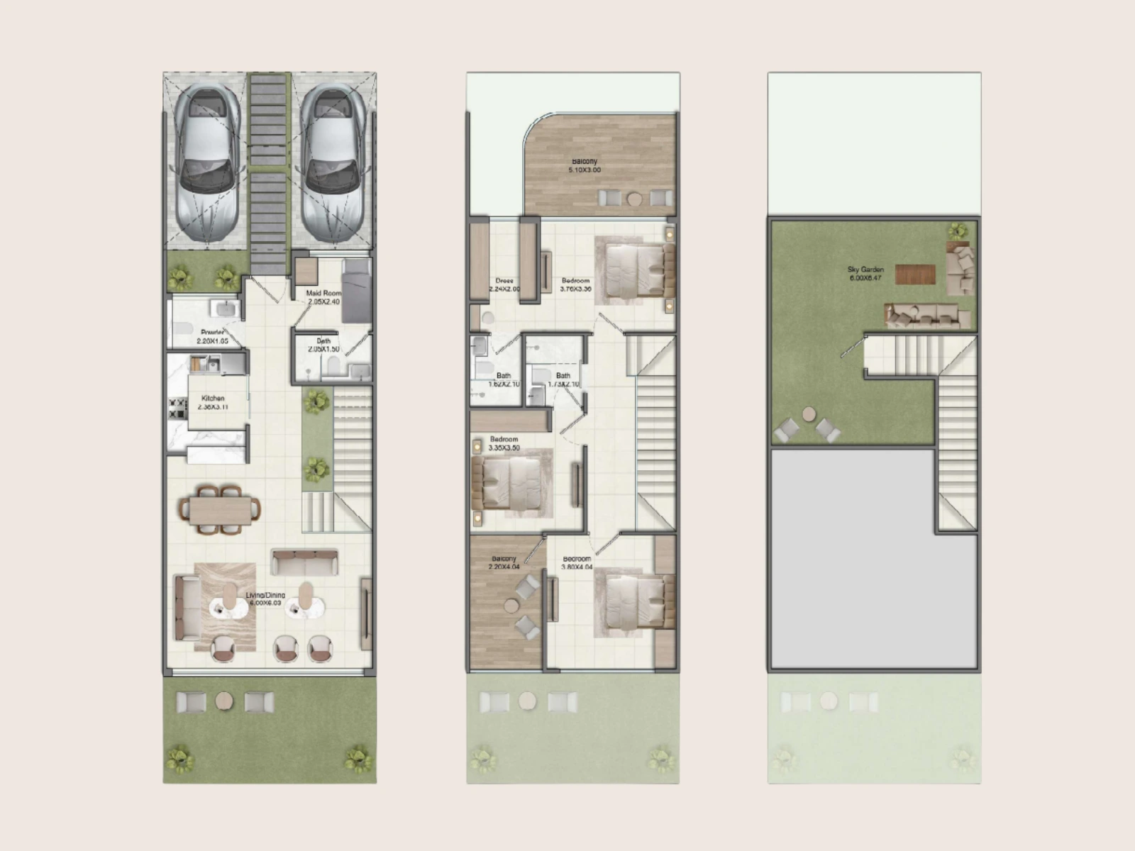 - 5BR: 3700 – 3950 sq ft