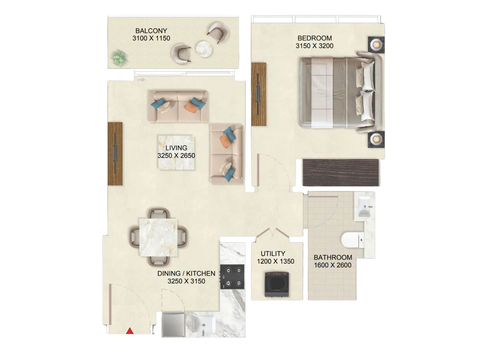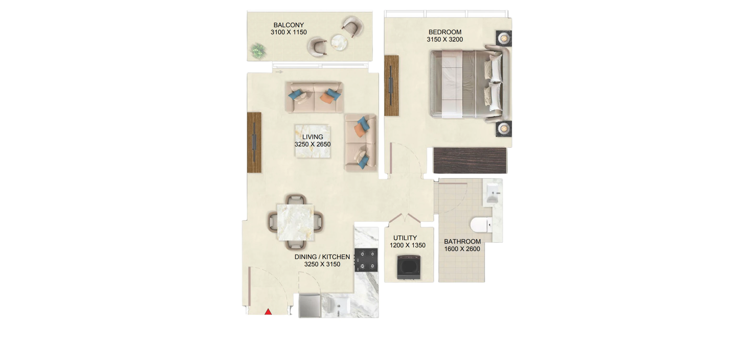 - 1BR: 631 - 831 sq ft